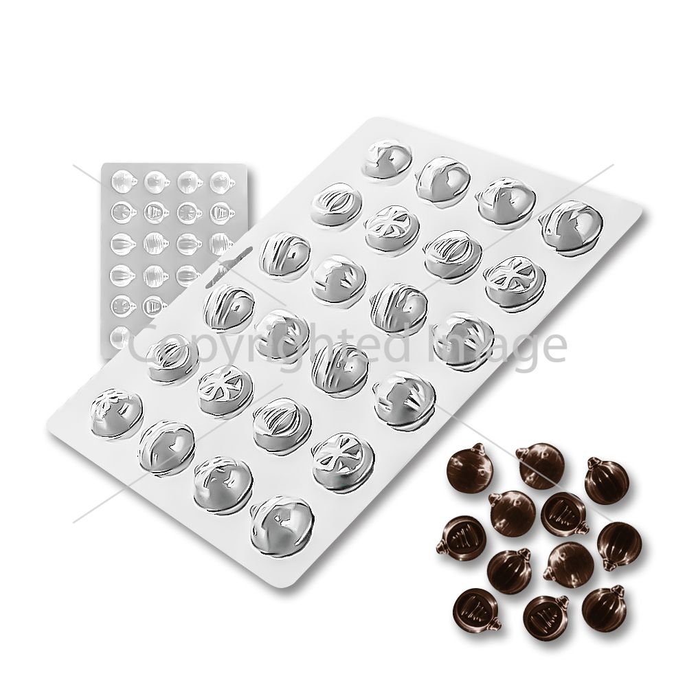 Plastic chocolate mould Christmas bulbs mini size 24 pcs, C-00072